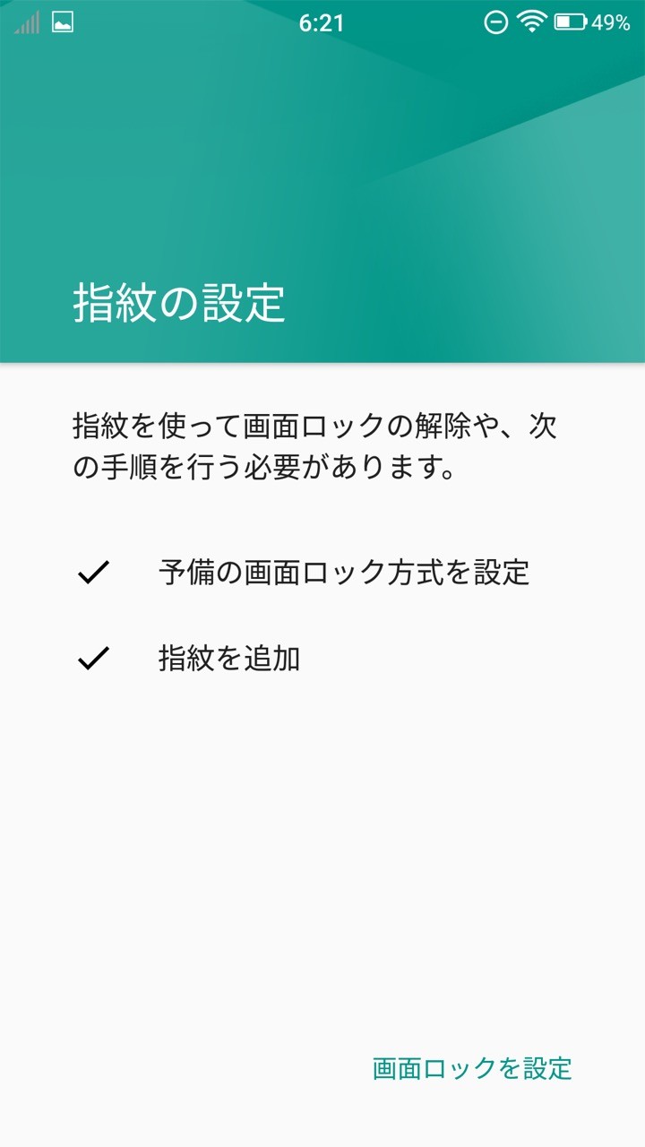 なお、指紋認証を使う際には認証できなかったときのために別途、他の「パターン」や「PIN(数字)」、「パスワード」の3種類の予備の画面ロック解除方式を登録する必要があります。