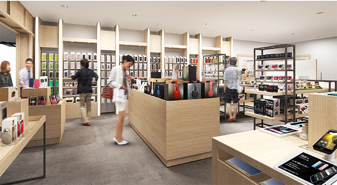 au SAPPOROはスマートフォン(スマホ)やモバイルアクセサリーなどの体験、インターネット、電気の相談、日用品の買い物まで新しいライフスタイルを提案できる通信とライフスタイルが融合した新しい店舗デザインを採用しているとしています。