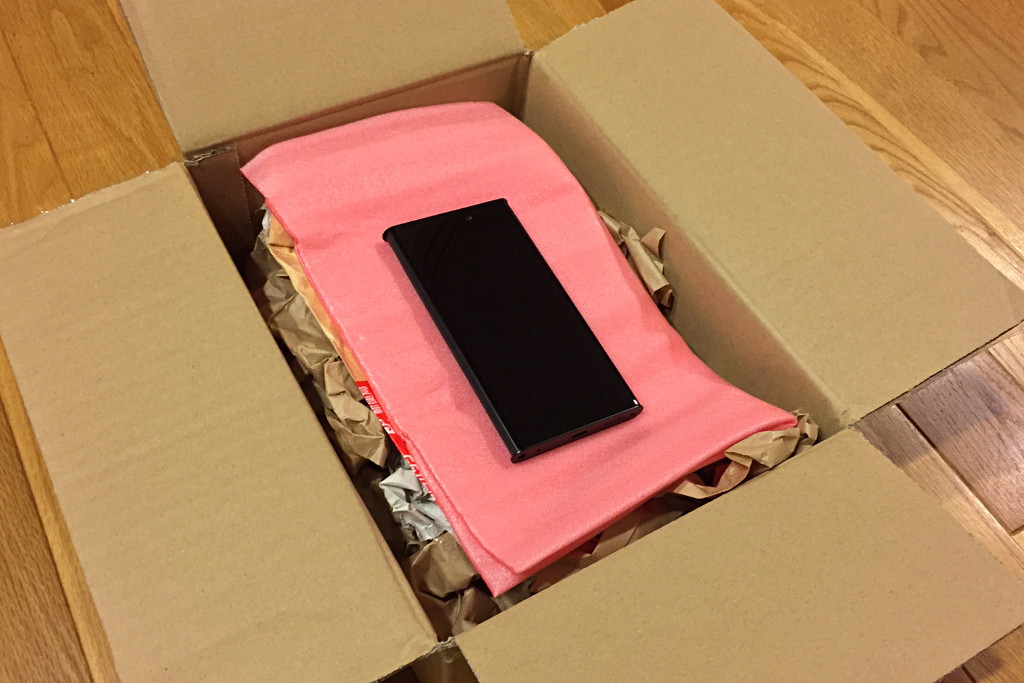 先方に到着したのは週明けの6月13日(月)で、その後、6月15日(水)の午前中には佐川急便で札幌市の自宅にNuAns NEOが返送されました。結果として1週間足らずで戻ってきたことになり、こういったサービスの中ではスピーディーな対応と言えます。届いたNuAns NEOも段ボール箱にしっかり梱包されて返送されました。