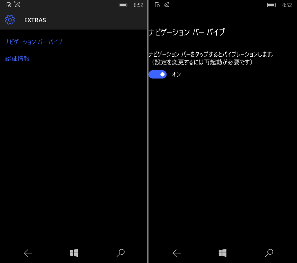 - ナビゲーションバーをタッチした際のバイブレーション動作のON/OFFを切り替えられるようにしました。