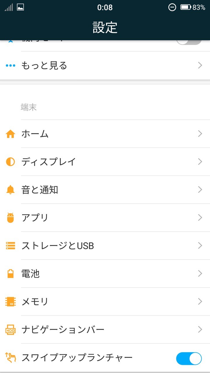 手順:「設定」>「端末」欄の「スワイプアップランチャー」をON/OFF