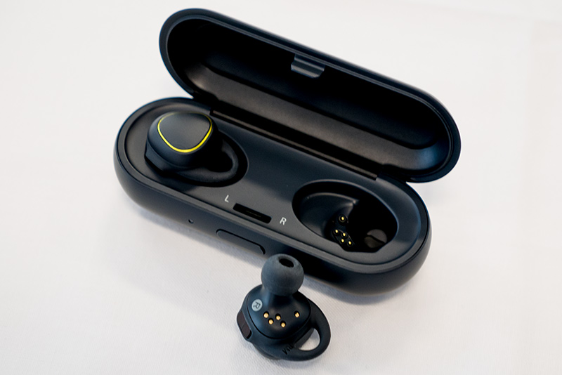一方、同梱されるGear IconXは、バッテリーを内蔵するケースが付属する。イヤホン自体に4GBの内蔵ストレージが搭載されているので、スマホと独立した音楽プレイヤーとしても機能する。また音楽プレイヤーとしてだけではなく、加速度センサーや心拍センサーを利用したフィットネス用途にも利用可能だ。