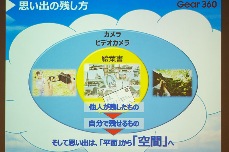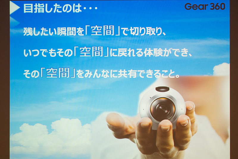 そして「今までの思い出は平面でしか残せなかったものを、これからは空間を残したい、そういう思いでGear 360のカメラを開発した」と説明した。