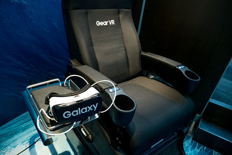 さらに東京・大阪で開催された「Galaxy Studio」で人気だった動く椅子とシンクロしたVR映像が、Galaxy Cafeでも体験できる。