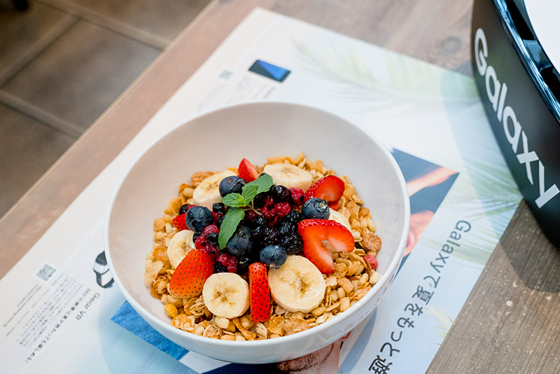 そして、Galaxy Cafeの目玉としてGear VR体験付きの「スペシャルアサイーボウル」(900円)が提供されている。今回はそんなGalaxy Cafeで体験できるハワイのVR映像を中心に店内の様子を紹介する。
