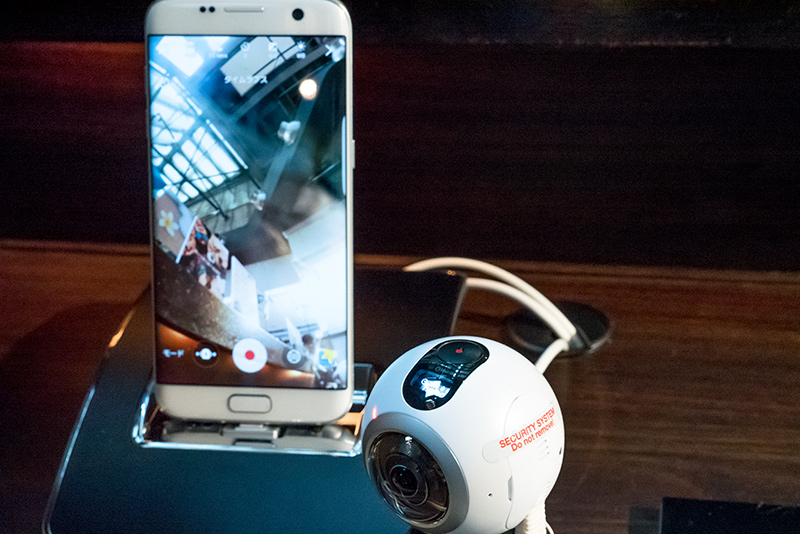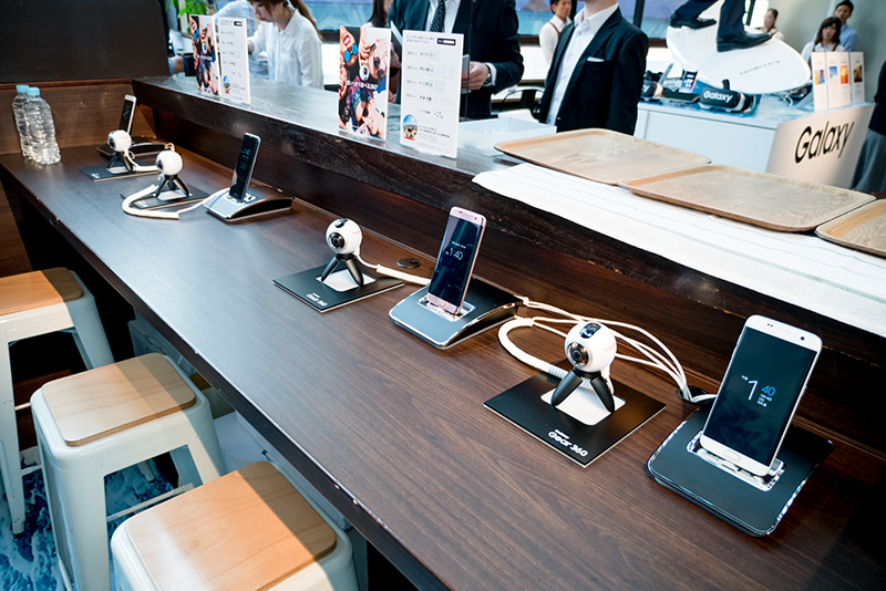 またカフェ店内には、Gear 360とペアリングされたGalaxy S7 edgeが用意されており、360°映像の撮影体験ができる。気になる操作方法や使い勝手など、Gear 360の購入を考えている方にオススメだ。