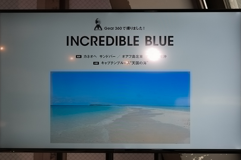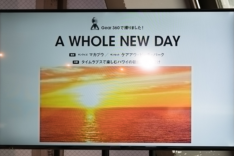こちらの目玉はGear 360で撮影されたサーフィンのVR映像だ。臨場感たっぷりの移動する自動車や船の揺れとリンクしたVR映像から始まり、360°自由に見られる迫力のサーフィンのVR映像は貴重な体験だ。