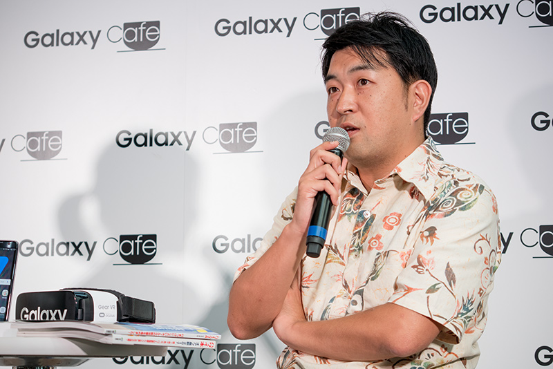 オープン初日の14日にはオープニングイベントが開催され、枻出版社 ハワイスタイル編集長の渡邊真人氏が登壇。そこで、Galaxy Cafeで体験できるハワイの4つのVR映像について解説が行われた。