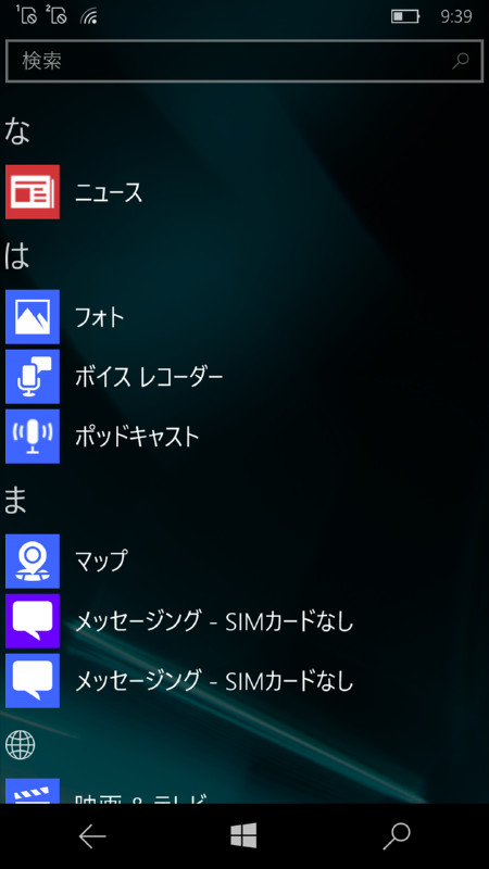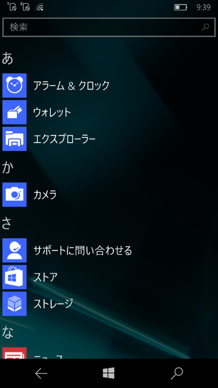 プリインストールアプリもWindows 10 Mobileスマホとして必要最小限のものだけで、サードパーティー製のアプリはFacebookくらいとなっています。