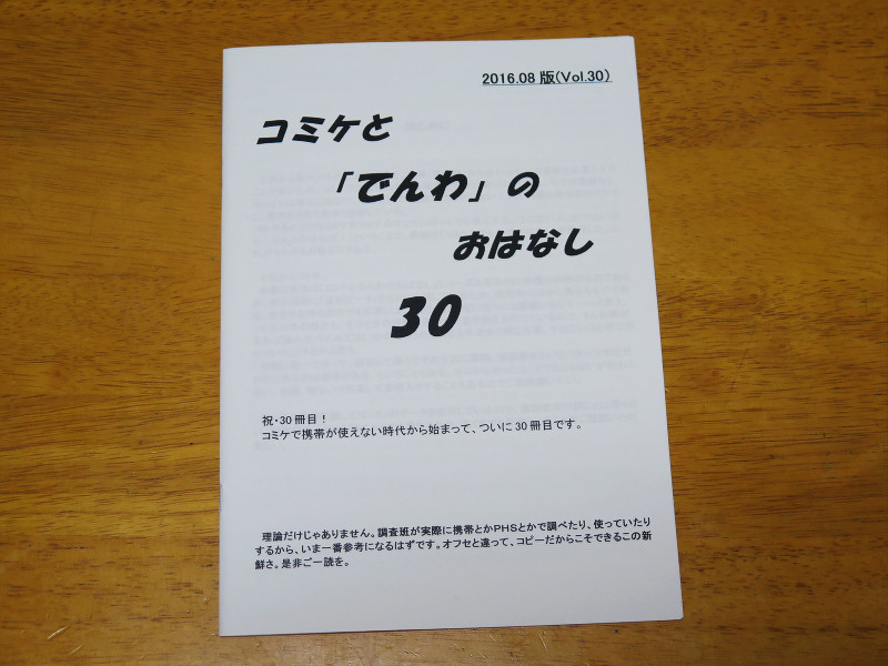 こちらはサークル「Yds」にて入手した同人誌で「2016夏」では只見線(福島県から新潟県に跨って走っているローカル鉄道線)田子倉トンネルの通信キャリアの電波事情というピンポイントすぎるレポートや携帯電話会社(キャリア)のエリアマップの楽しみ方など、同人誌ならではの超ディープな内容となっています。