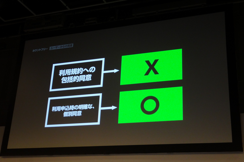 また契約に際しては利用規約の一部として表記するのではなく、カウントフリーについてのみの説明および同意の画面を表示し、利用規約とは個別でユーザーの同意を得る手順を踏むなど、細心の注意を払っている様子が伺えます。その上でさらに「懸念が発生した場合は誠意を持って対応します」とも発言しており、今後の議論の余地も残したかたちとなりました。