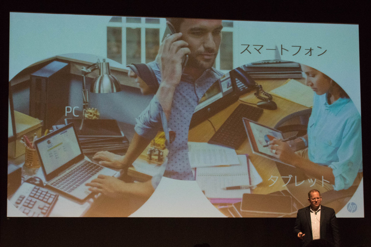 まずはじめにHPのPersonal Systems Mobility Product Managementを担当するVice PresidentのKeith Hartsfield(キース・ハーツフィールド)氏と日本HP 執行役員 パーソナルシステムズ事業本部長兼サービス・ソリューション事業本部長の丸嶋俊一氏から今回発表になるHP Elite x3の優位性について説明がありました。