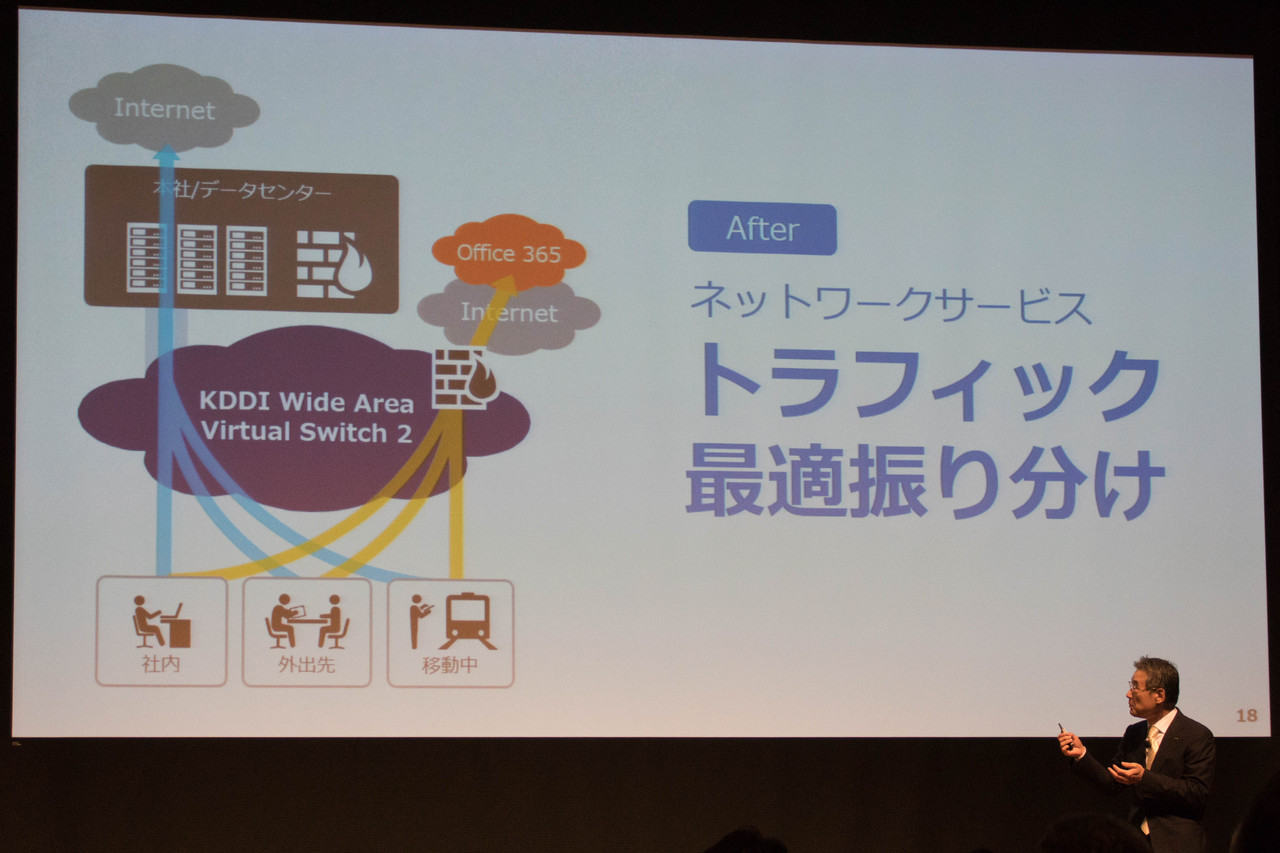 他にもすでに数万アカウントの導入実績があるSkype for Businessと連携させることで、電話やメールも場所に囚われない、ユニファイドコミュニケーション環境の構築もでき、ビジネス環境の多くはすでにMicrosoft製品が多く、それらとの親和性の高いデバイス、ネットワーク、クラウドをワンストップ提供できるのがKDDIの強みであると、今回発表した内容について自信を伺わせる内容となっていました。