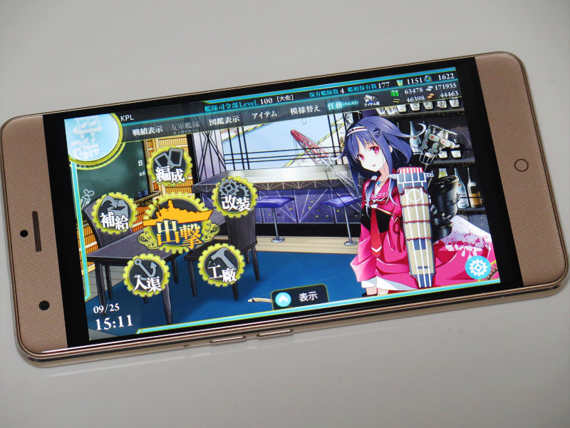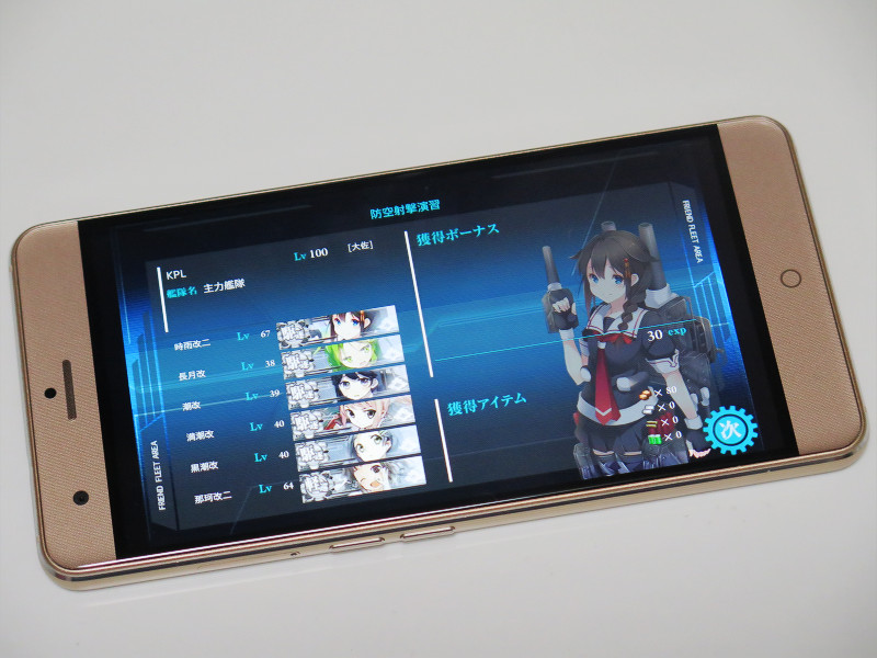 逆に3D描画能力をほとんど使わないAndroidゲームアプリの代表格としてAndroid版「艦隊これくしょん」(以下、艦これ)で遊んでみましたが、非常に快適でした。