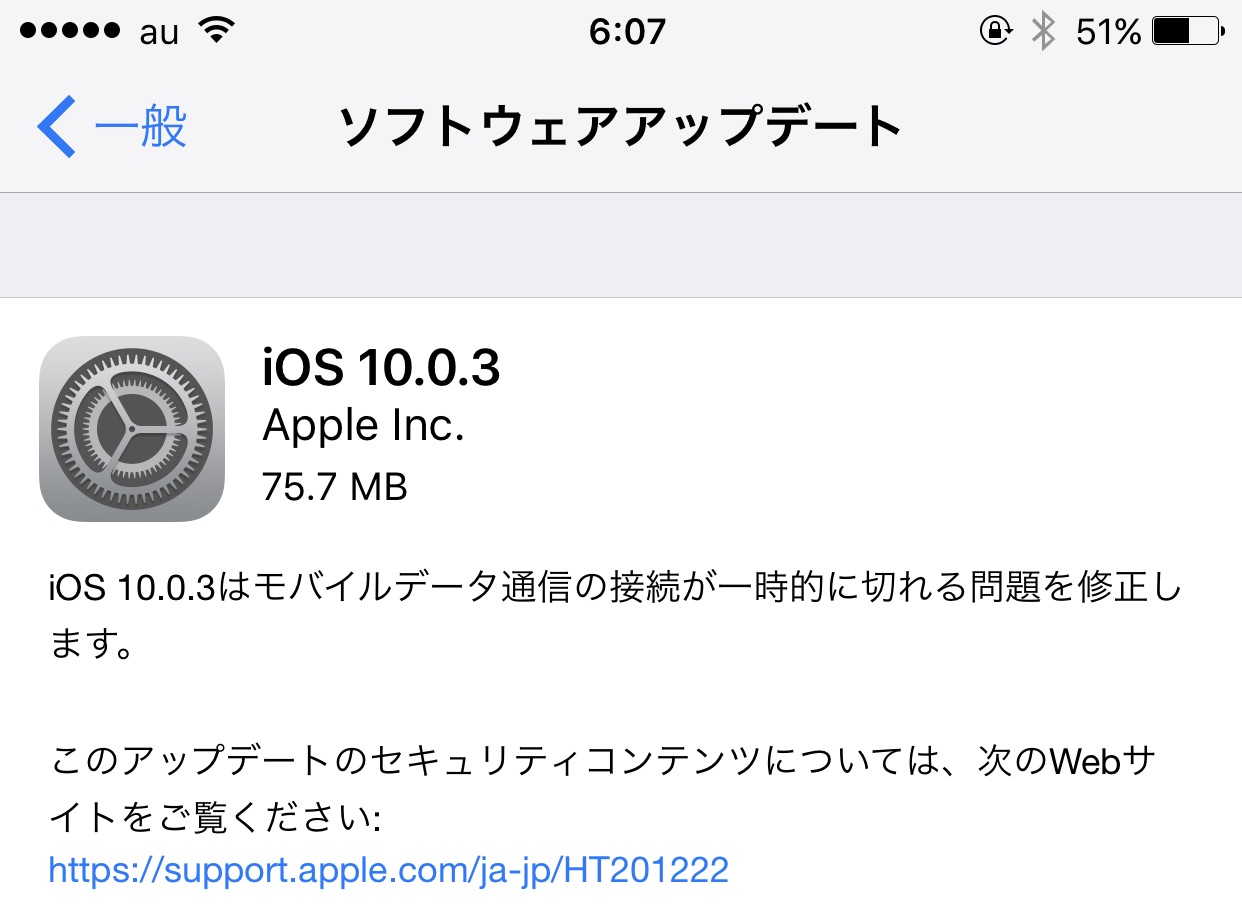 iOS 10.0.3はモバイルデータ通信の接続が一時的に切れる問題を修正します。