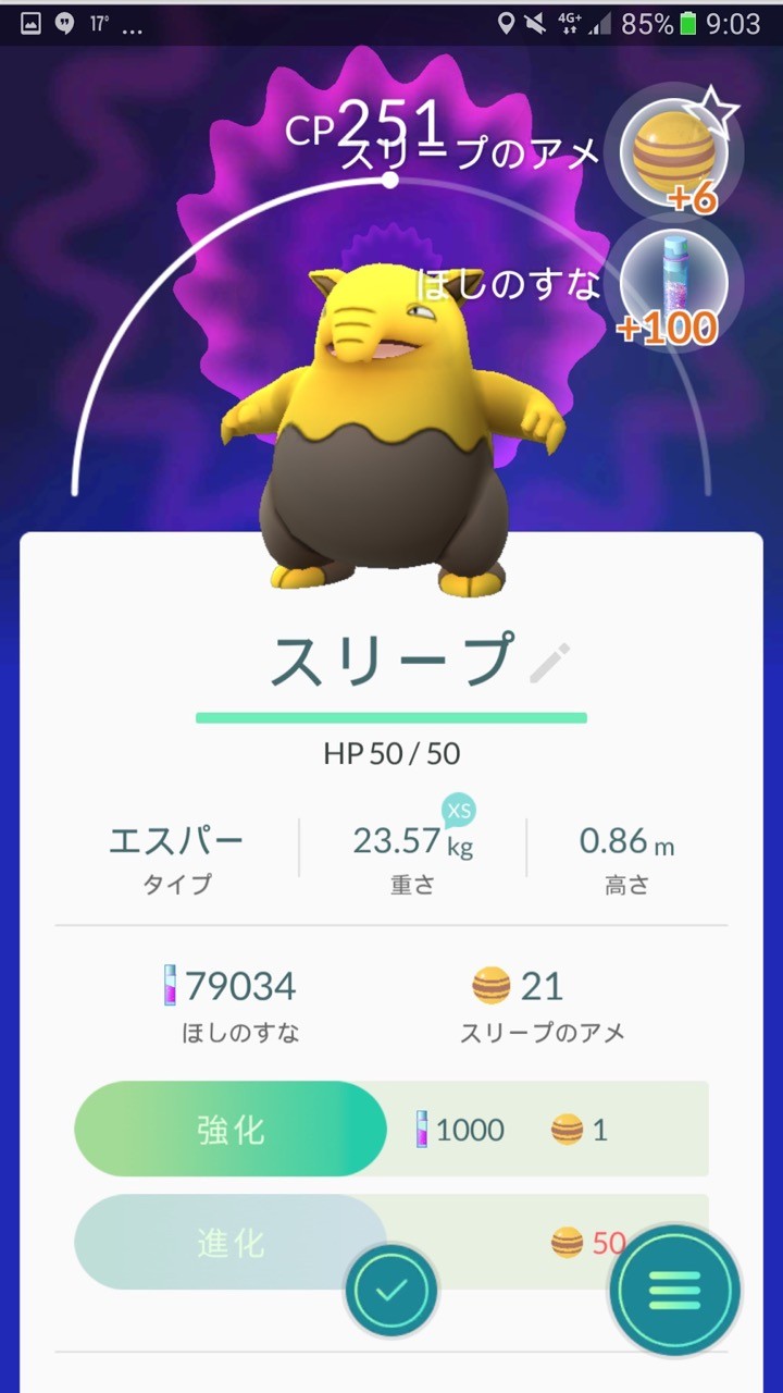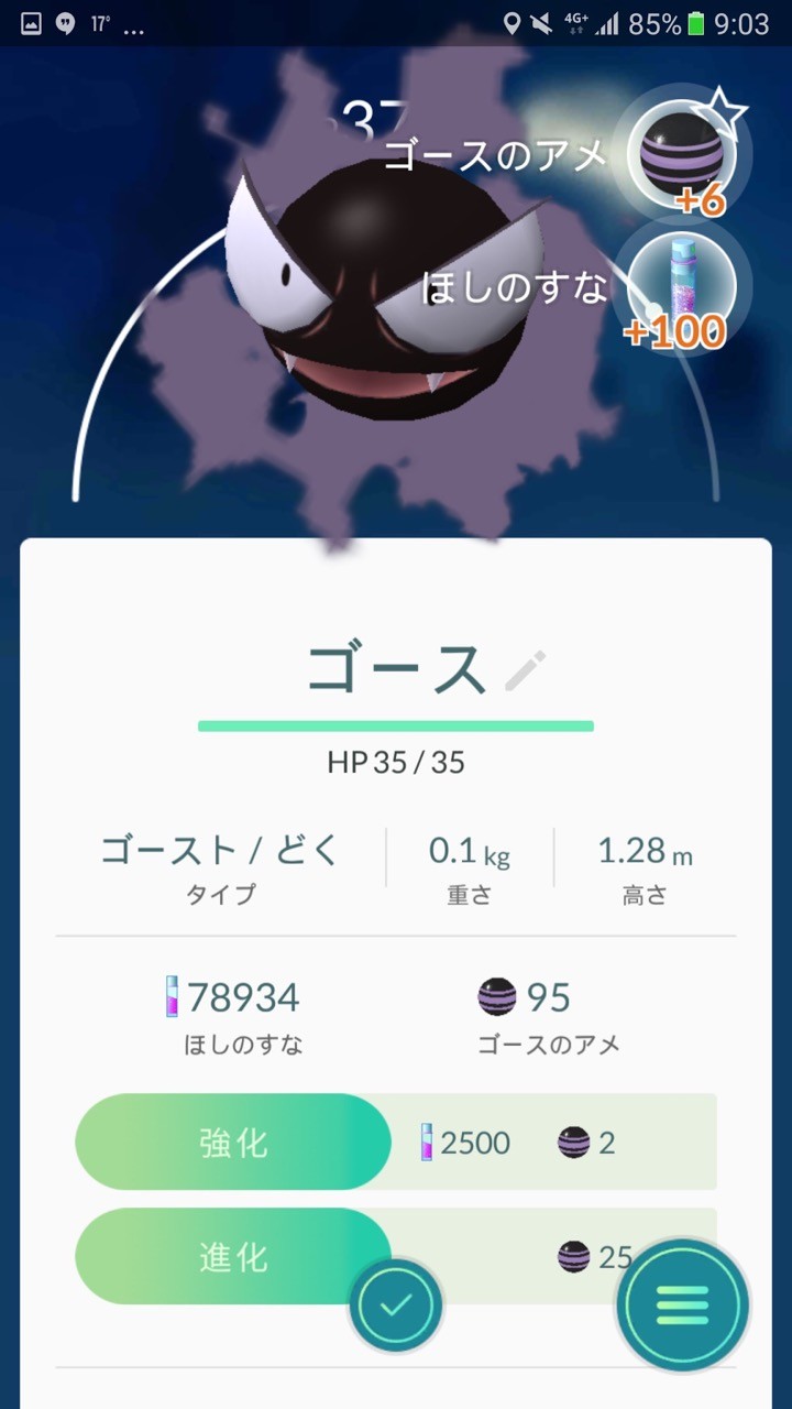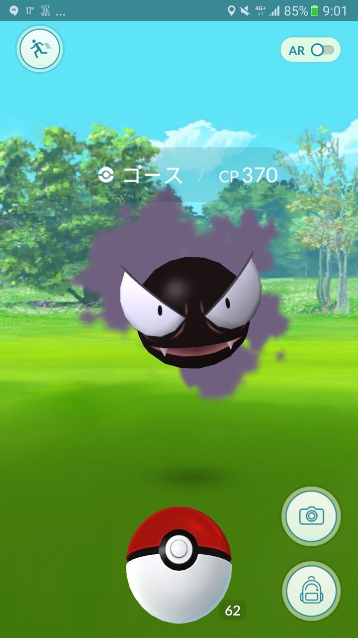 また出現するポケモンもハロウィンに似合う種類になっているとのことで、手元で確認できた限りではゴースやゴースト、スリープ、カラカラ、ニャースなどが出やすくなっているようです。