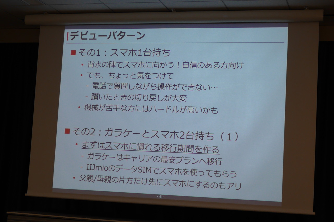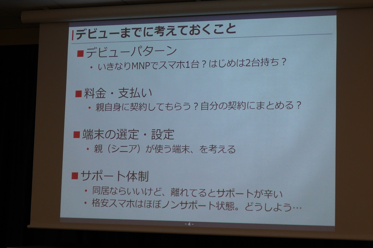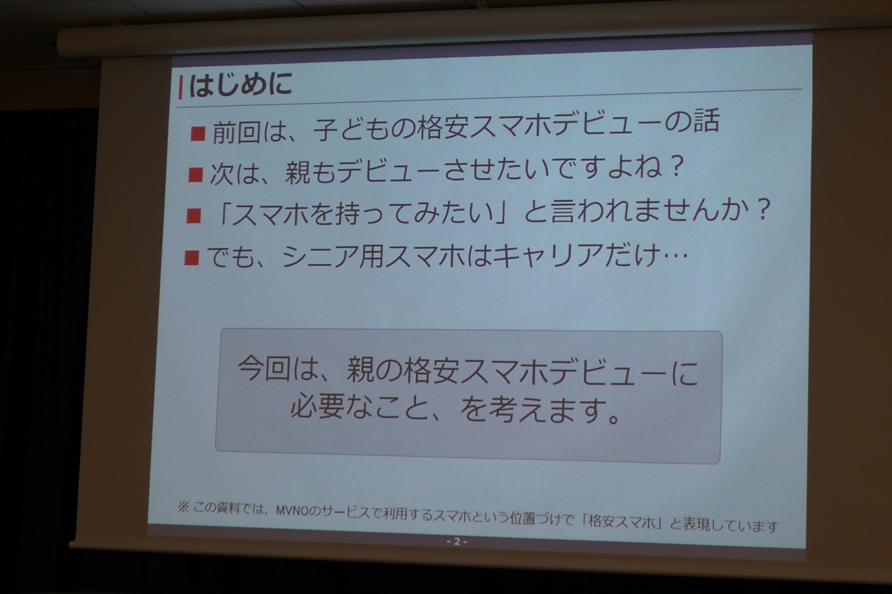 今回の初心者セッションは親世代のスマートフォン(スマホ)デビューに格安スマホを使う内容となっています。近頃、中高年のスマホユーザーが増え始めており、関心も高いと言う統計結果が出ています。