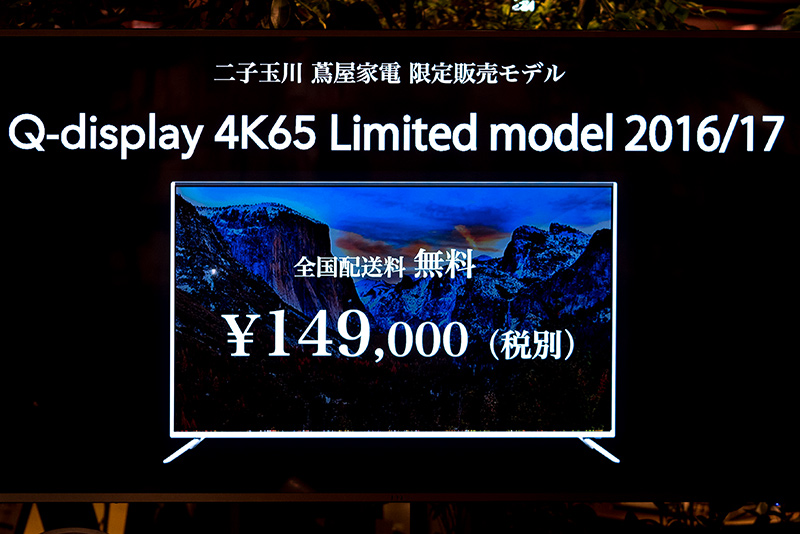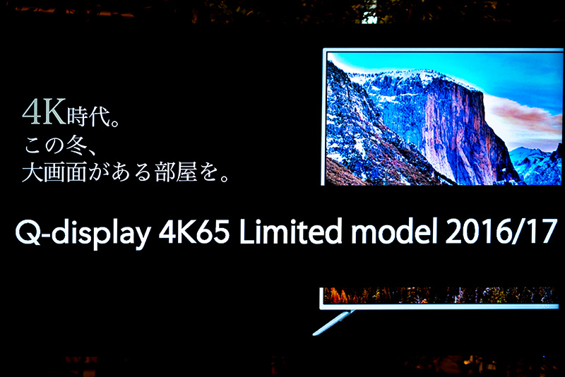 中澤氏が家電メーカーとしてチャレンジしている「製販一体」の次なる製品は「黒物家電」であるとして、Qディスプレイシリーズの65インチ4Kモデル「4K65 Limited model 2016/17」投入し年末年始の激戦に挑戦する。