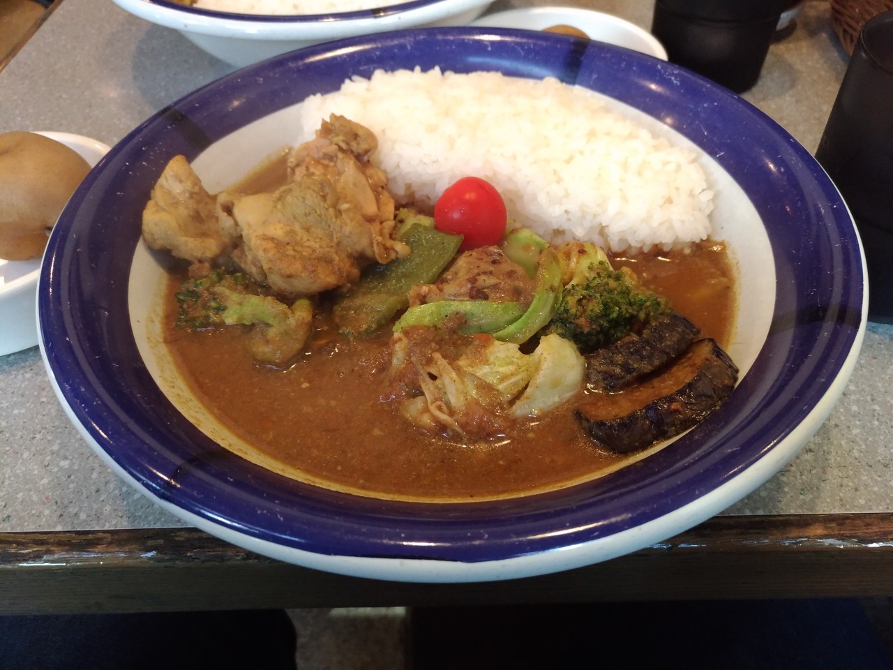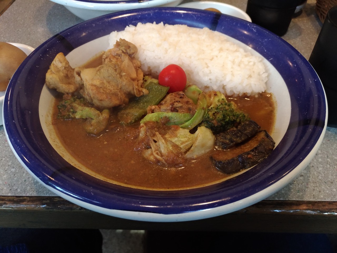 カレーのルーと具材は色鮮やかに撮れているだけに少々惜しい結果に。