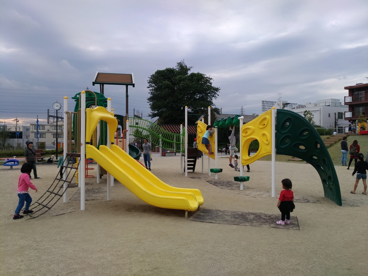 まずは屋外の公園にて撮影。コントラストの高い遊具を被写体にそれぞれで撮り比べてみました。あいにく天候に恵まれず、日中の撮影ながらどんよりと暗く写ってしまうカメラ泣かせのシチュエーションでの撮影となりましたが、どちらのカメラもかなり健闘はしています。