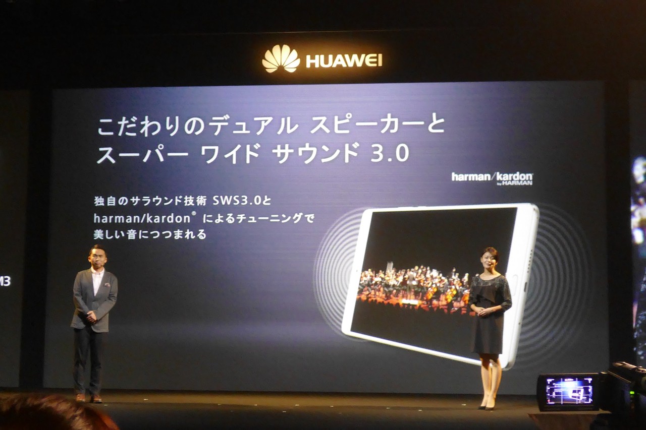 製品開発にあたっては、ハーマンのオーディオブランドである「Harman Kardon」のエキスパートによる音響チューニングがなされており、ファーウェイ独自のサラウンド技術「SWS 3.0」を搭載しています。また、ハードウェア面においても2chのステレオスピーカーや旭化成エレクトロニクス製のHi-Fi DACチップ「AK 4376」を採用するなど、ハードと技術の両面から音質の向上を図っています。
