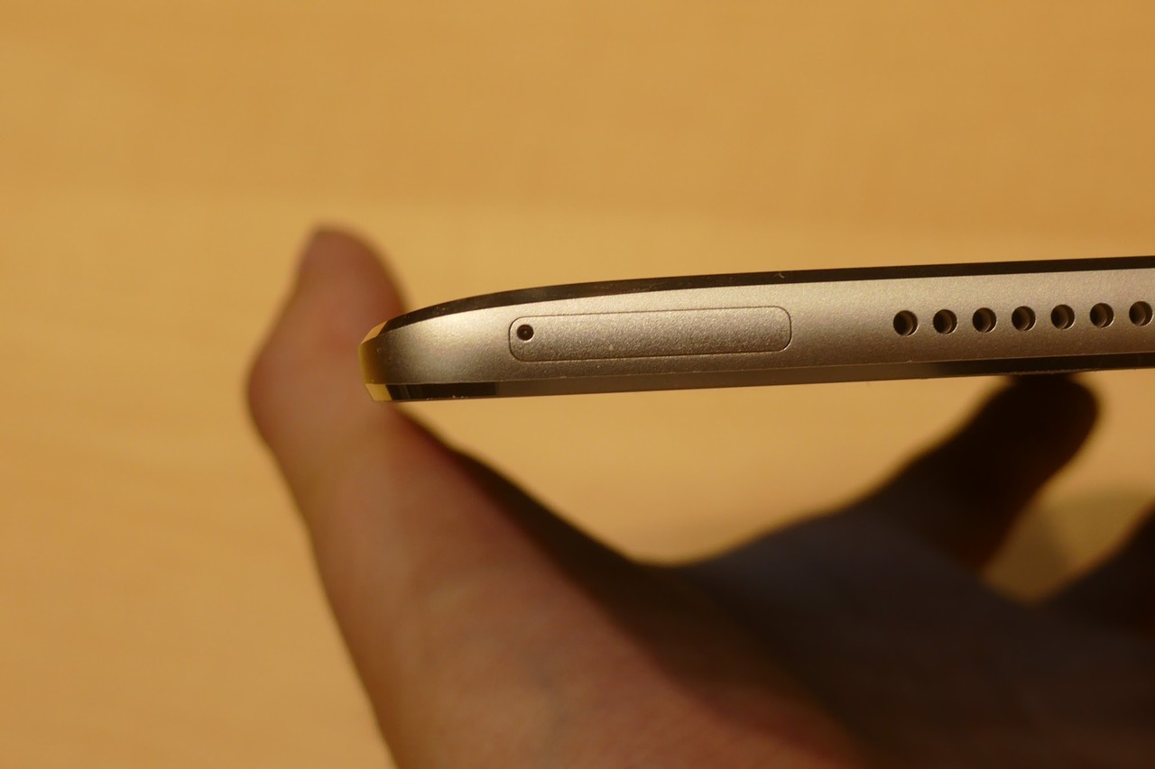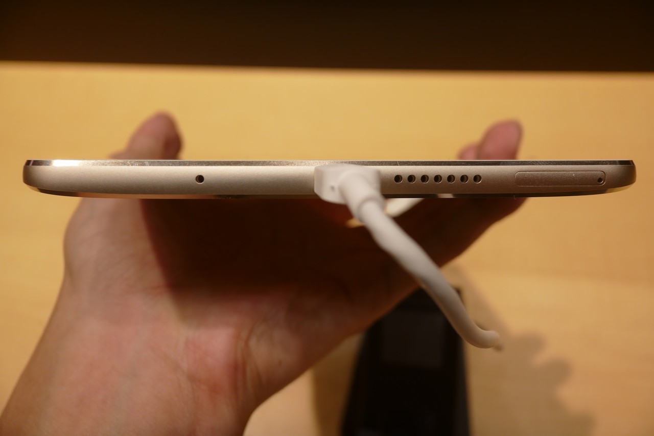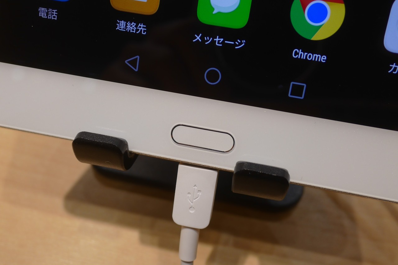 一般的にSIMカードスロットの配置と言えば、本体側面にあることが多いですが、MediaPad M3では本体下部に配置されています。音や映像など特長が多いMediaPad M3ですが、筆者が一番最初に目に付けたのはこの「スロットの配置場所」でした。