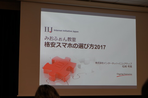 IIJでは2年前に開催された「IIJmio meeting 6」でも「スマホの選び方」と題してSIMフリースマートフォン(スマホ)などのいわゆる「格安スマホ」の選び方を紹介していましたが、今では製品のスペックも向上し、仕様やサービスも変化しています。そこで、IIJでは2017年の視点で格安スマホの選び方を紹介していました。