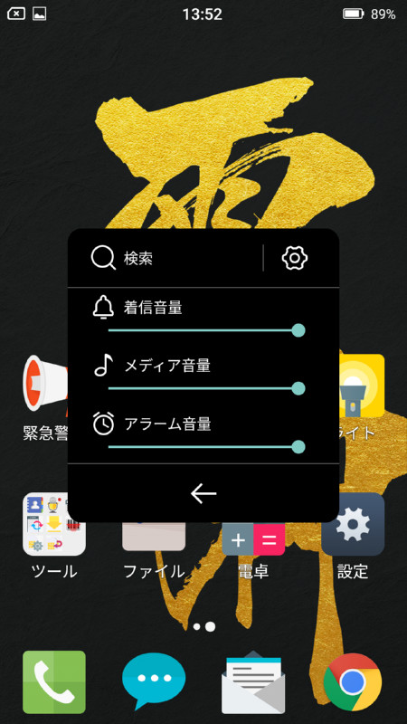 またホーム画面はフォルダーでアイコンを分類でき、初期状態では「Gmail」や「Chrome」などのGoogleのアプリは「Google」のフォルダーに、FMラジオやQRコードリーダーなどのツール類は「ツール」のフォルダーにまとめられています。
