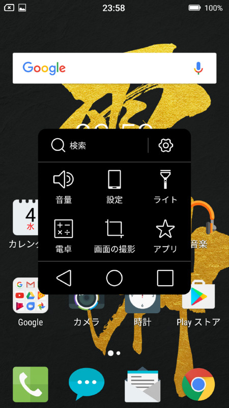 FREETELボタンはロングタップや連続タップでジェスチャーのような操作でバックキーなどの機能を割り当てることができましたが、FREETEL Keyでは検索画面呼び出し・電卓起動・設定画面呼び出しなどのショートカットのほか、6つまでのアプリショートカット登録や画面キャプチャー録画機能の簡単呼び出しなどができます。
