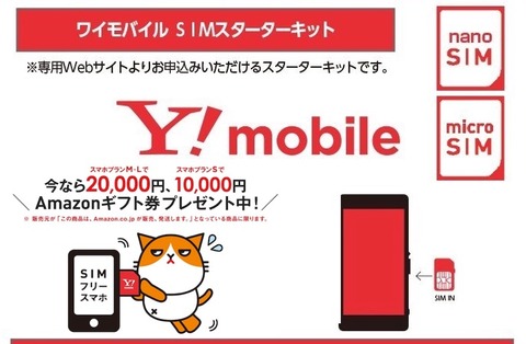 | ワイモバイルSIMスターターキット Amazonギフト券最大20,000円分プレゼント! |