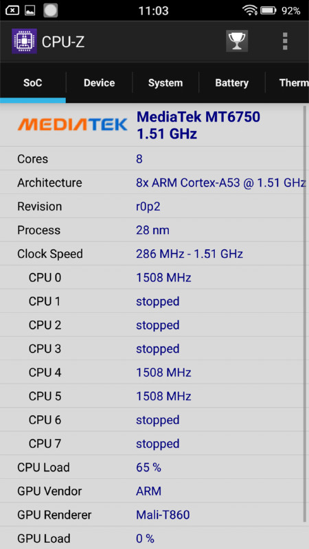 改めて性能に関連する部分の基本的な仕様を解説すると、CPUはMediaTek製のミドルクラス向けオクタコアCPU「MT6750」(最大1.5GHz×4コア+最大1.0GHz×4コア)を搭載し、GPUは「ARM Mali T-860」、内蔵メモリー(RAM)は4GB、画面(ディスプレイ)解像度は1080×1920ドットのフルHDとなっています。