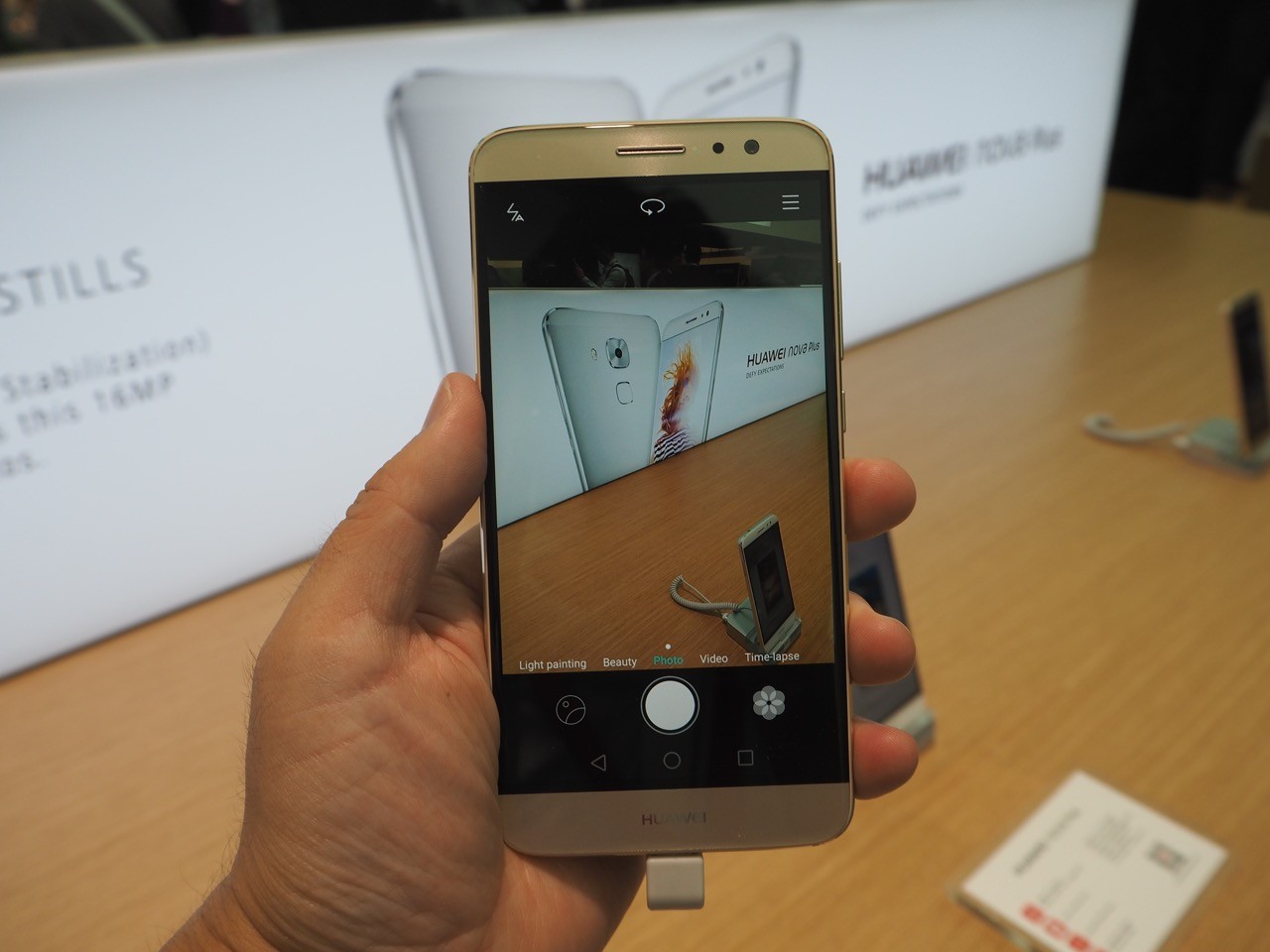 会場には「honor 8」も展示されていました。こちらはHuawei P9のようにLeicaブランドではないものの、デュアルレンズカメラを搭載したモデル。カメラの画素数は背面が約1200万画素×2、前面が約800万画素裏面照射型CMOS、レンズは背面がF2.2、前面がF2.4で、その他にリアカメラは2色フラッシュに対応しています。