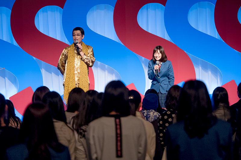 ピコ太郎さんと大原さんはダンス中も笑顔を絶やさずその役割を果たした。