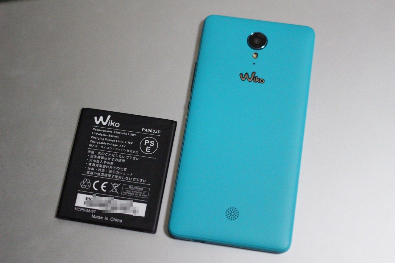 リアカメラ(ソニー製約800万画素センサー)部分は若干のでっぱりがあり、その下にLEDフラッシュライトと「Wiko」のロゴが配置。リアカバーは本体下側のmicroUSB端子部分に爪を引っ掛ければ比較的簡単に外すことができす。