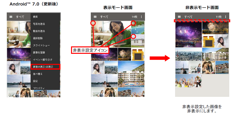 3)「アルバム」アプリ:データ表示/非表示モード追加