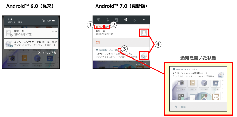 ・OSアップデートにより、お客さまのauスマートフォンはAndroid 7.0に変更され、画面操作や機能が変更されます。