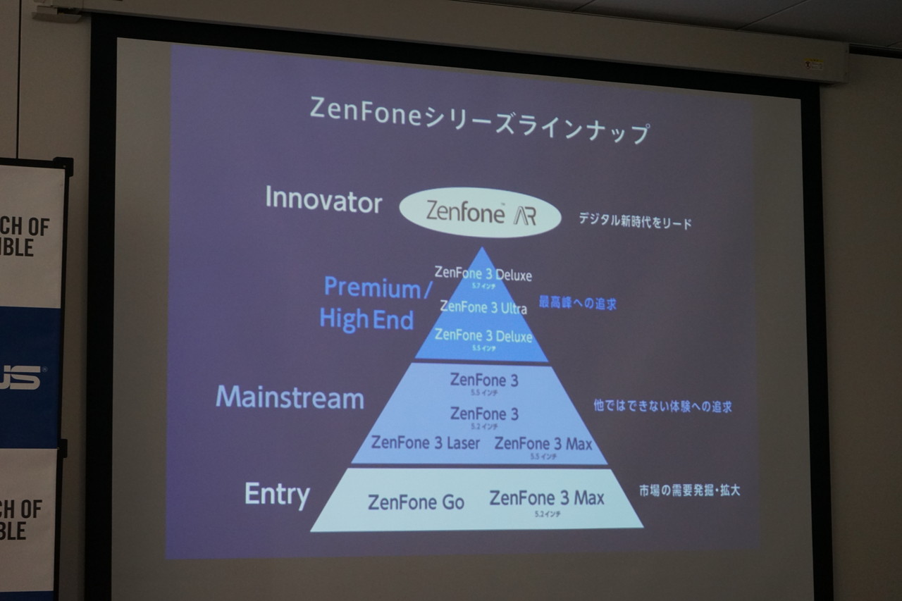 ZenFone Goなどを始めとしたエントリーモデルからZenFone 3 Deluxeなどのハイエンドモデルまで幅広いラインナップを構えているZenFoneシリーズですが、発表されたZenFone ARはそのさらに上となるモデルとして販売されます。