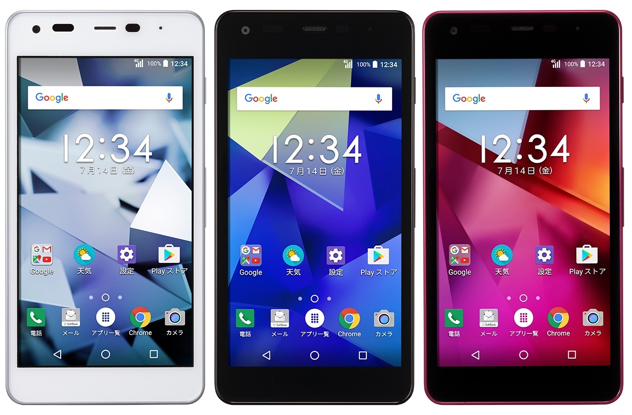 本体色はホワイト、ブラック、レッドの3色展開。サイズは約143×72×10.6mm、質量は約142g。主な仕様はQualcomm製「Snapdragon 425(MSM8917)」(1.4GHz×4)および16GB内蔵ストレージ、約1310万画素CMOSリアカメラや約200万画素CMOSフロントカメラ、microSDXCカード(最大256GBまで)、IEEE802.11b/g/n準拠の無線LAN(Wi-Fi)、Bluetooth 4.2、2300mAhバッテリーなど。