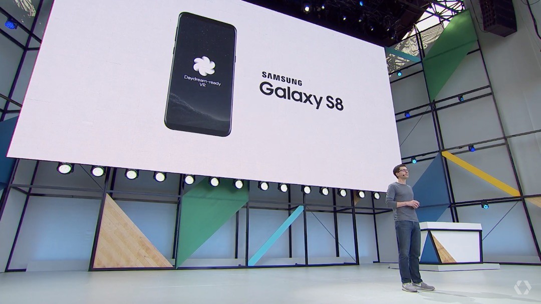 まず基調講演にてGalaxy S8およびGalaxy S8+のDaydream対応が発表されました。これら2機種はサムスン電子のVRプラットフォームおよびVRヘッドセット「Gear VR」に対応しているため、Daydream(専用VRヘッドセットは「Daydream View」)と両方が使えることになりました。