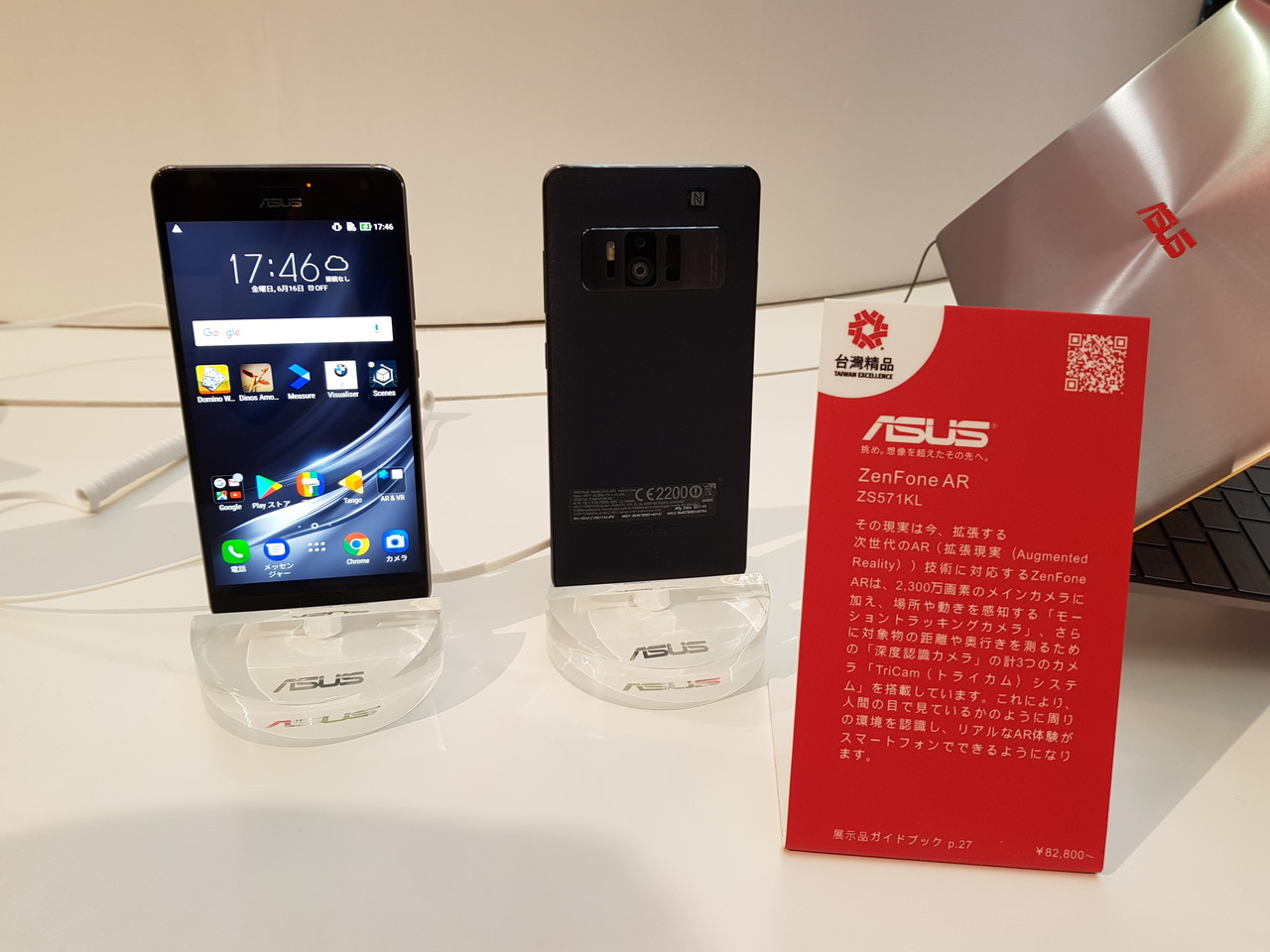 ZenFone ARは、気軽にAR体験を楽しめるハイエンドスマホで、約2300万画素リアカメラに加えて、場所や動きを感知する「モーショントラッキングカメラ」や対象物の距離や奥行きを計測するために用いる「深度認知カメラ」の合計3つのカメラを背面に搭載しており、ASUSはこれを「TriCam(トライカム)システム」と称しています。