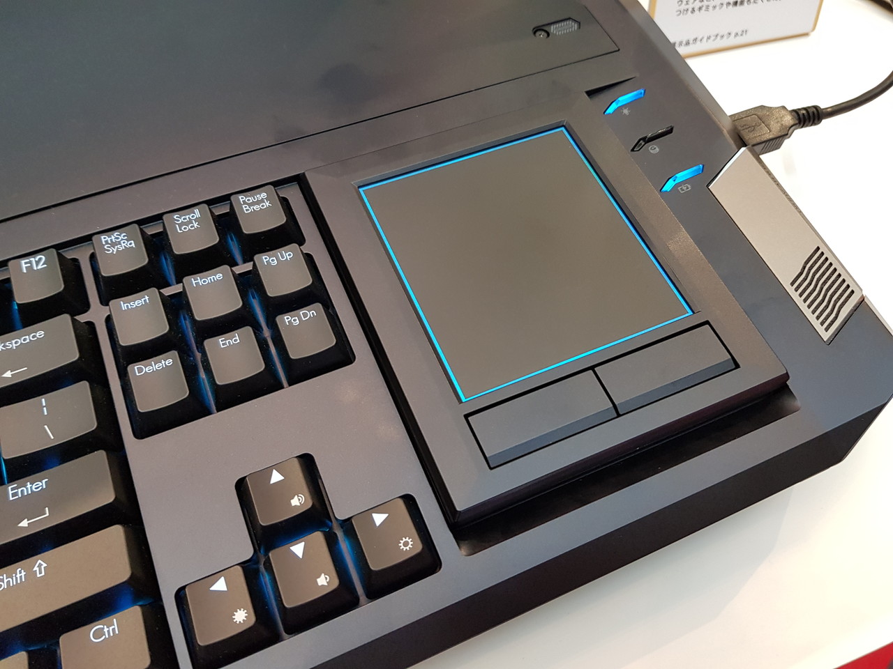 キーボード右側に備えられているデバイスは、表面がトラックパッド、裏面がテンキーとなっており、必要に応じて使い分けることが可能です。
