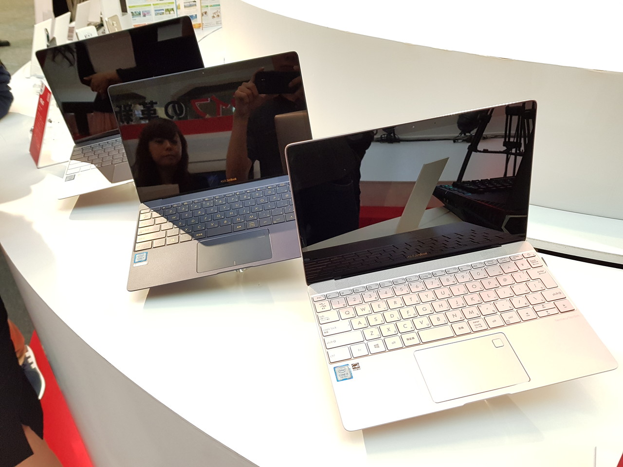 今や日本のSIMフリースマホ市場でも大きなシェアを持っているASUSは、Googleが開発する次世代のAR(拡張現実)技術「Tango」に対応するスマホ「ZenFone AR」や、指紋認証センサーを搭載し、0.4mm厚のCorning Gorillaガラス4やアルミニウム合金を採用することで重さ約910gの軽量さを誇るノートPC「ZenBook 3」などを展示していました。