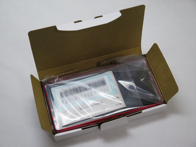 続いて箱を開くと、保護用の袋に入ったarrows Be F-05J本体とマニュアル類が入っていました。内訳としては、arrows Be F-05J本体およびクイックスタートガイド(冊子)、ご利用にあたっての(冊子)、保証書のみとなっています。