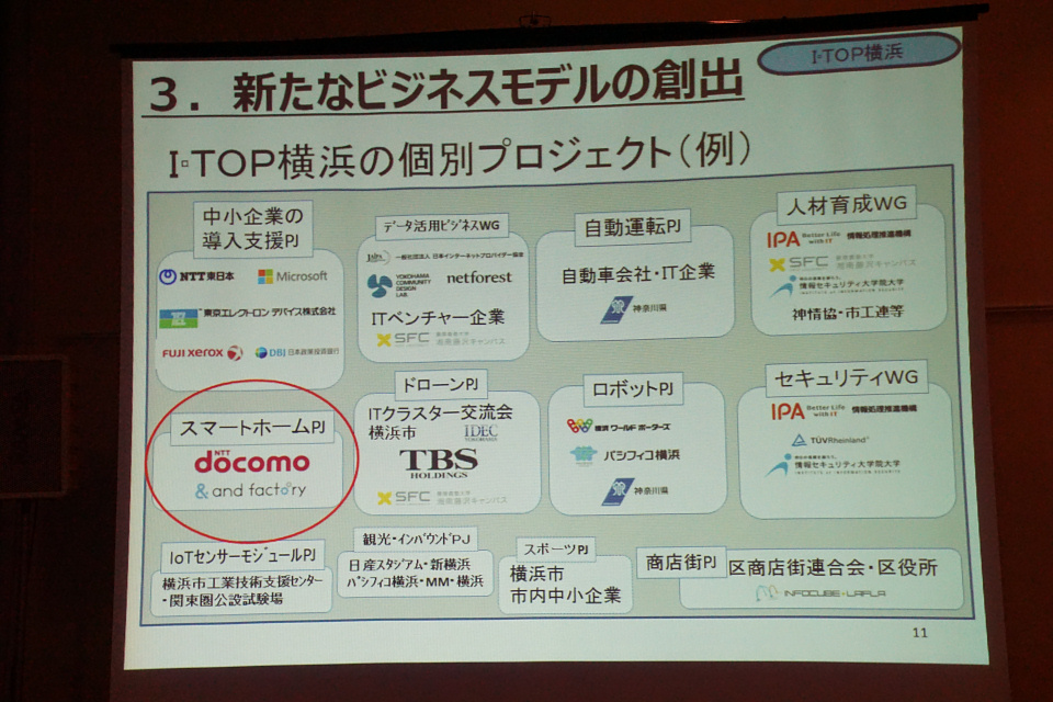 具体的にはI・TOP横浜の取り組みとして約6000社を数える製造業関連企業と約3000事業所を持つIT関連企業を抱えている点を強みとしており、各企業の連携や共同開発、また横浜市全体を利用した多様性のある地域での社会実験が可能である点なども、横浜市が持つポテンシャルとしてアピールしています。