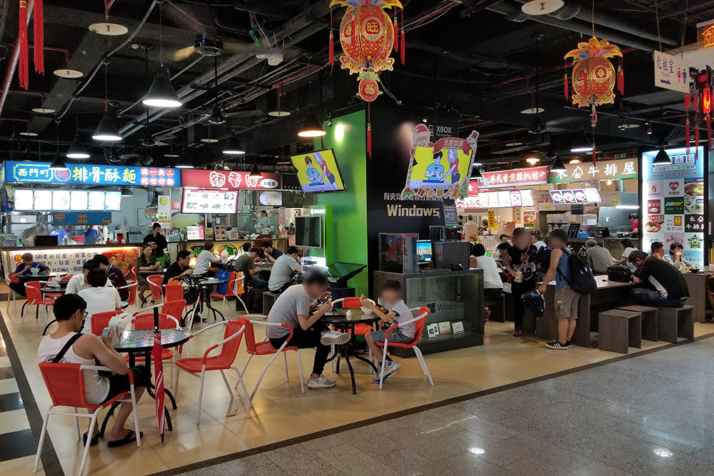 光華商場内にも、1階のフロア奥にフードコートが設置されています。三創生活園區内の飲食店は観光客の来店も考えたラインアップといえる一方で、光華商場内の飲食店はよりローカル色が強くカジュアルな印象ですね。