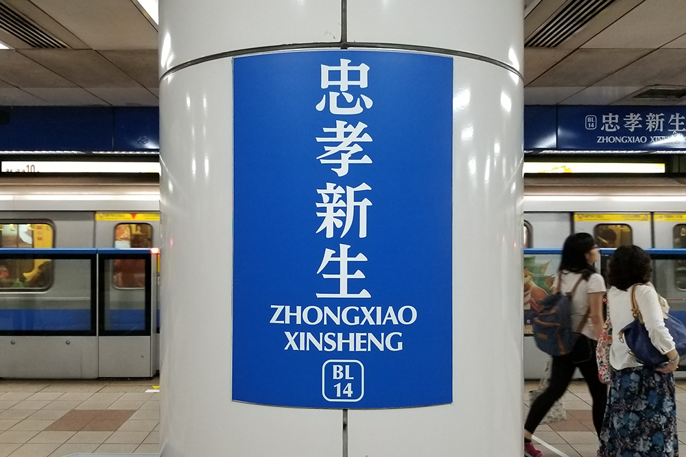最寄り駅は台北MRTの忠孝新生(ちゅうこうしんせい)駅。台北エリアを走るMRTは複数路線ありますが、この忠孝新生駅には中和新蘆線(路線図にはオレンジ色で表記)または板南線(同青色で表記)のいずれかでアクセスできます。
