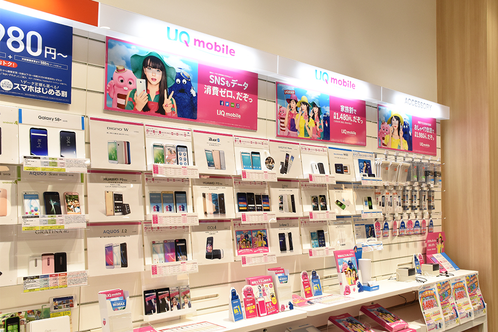 敷地面積が広いと紹介したUQスポットイオンモール大曲ですが、取扱う商品やサービスは他のUQスポットと大きく変わりはありません。