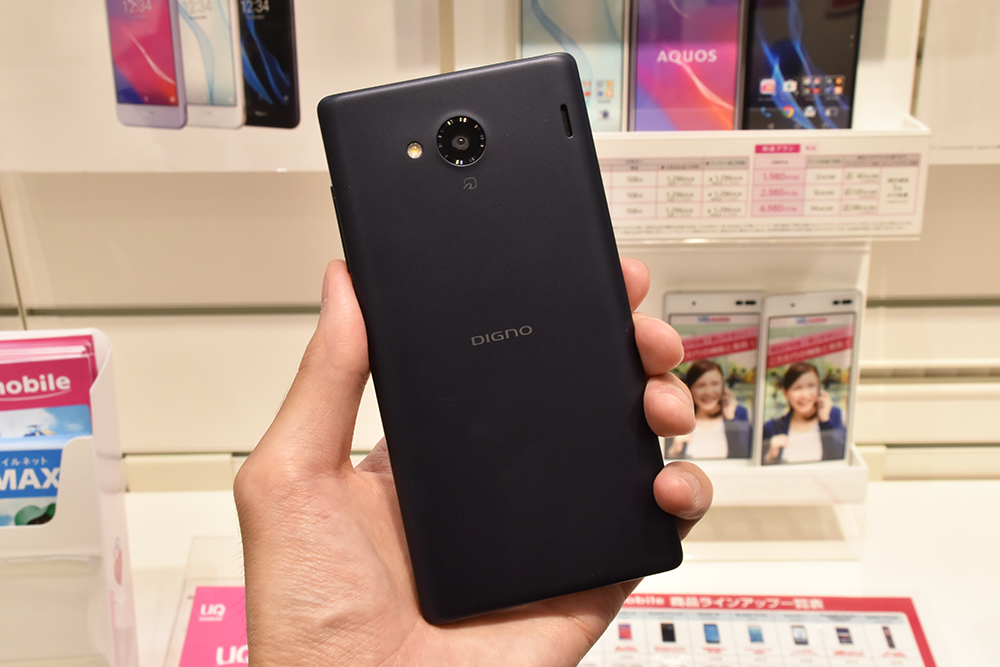 ちなみにこの日はUQ mobileの2017夏の新製品として発表済みのモデル「DIGNO V」の発売日でもありましたが、店内にはさっそくモックアップの姿も。もちろんオープン初日から購入が可能です。