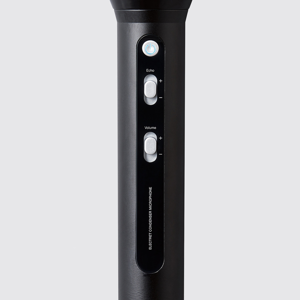 もうひとつのステレオスピーカー内蔵タイプは、柄の部分にステレオスピーカーを搭載したモデルです。別途スピーカーと接続する必要がないので、どこへでも持っていってカラオケが楽しめます。ただしスピーカー使用時はバッテリー駆動時間が最大約2時間と短くなるので注意です。