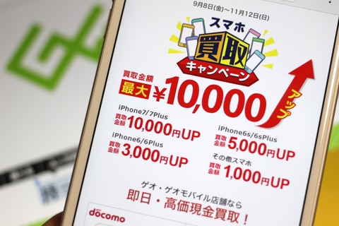 期間は2017年9月8日(金)から11月12日(日)。上乗せ額はiPhone 7やiPhone 7 Plusが10,000円、iPhone 6sやiPhone 6s Plusが5,000円、iPhone 6やiPhone 6 Plusが3,000円、その他のiPhone SEやiPhone 5s以前のiPhoneおよびAndroidが1,000円。